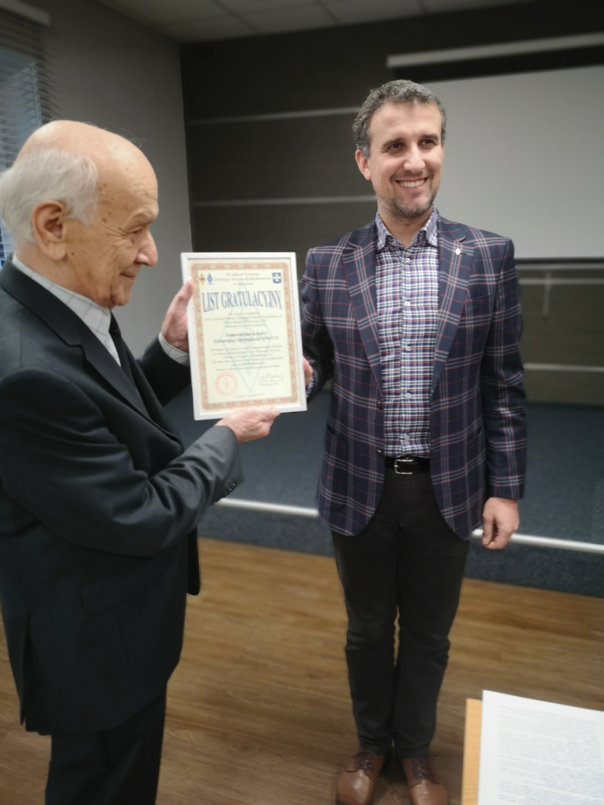 Na początku Zebrania Prezesa 18 OT PZK w Rzeszowie Adam SP8N wręczył Złotą Odznakę Honorową PZK kol. Edwardowi SP8FUX za szczególne osiągnięcia, zaangażowanie i zasługi na rzecz krótkofalarstwa oraz Polskiego Związku Krótkofalowców.